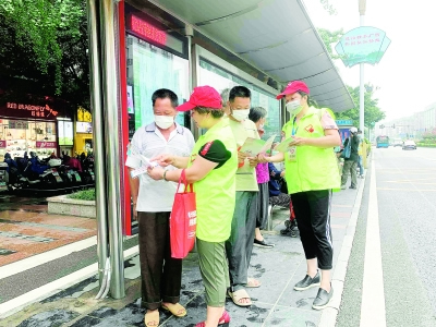本报讯(记者庄盈 文/摄)6月4日,市中心不少公交站台上泛起了一群身穿绿色背心的自愿者,他们头戴小红帽,胸挂“自愿者”事情牌,手持“自愿服务队”旌旗和“请排队上车 礼貌让座”提醒牌,...