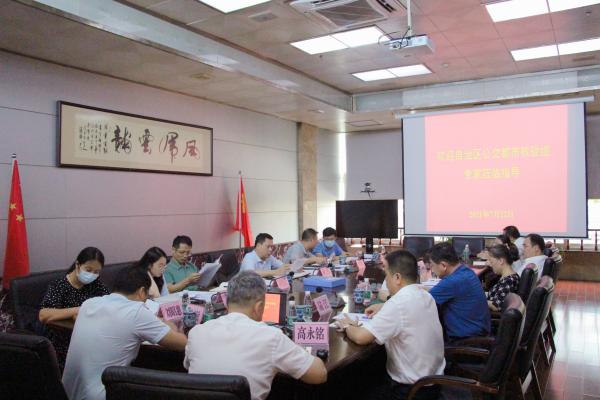 7月22日,自治区交通运输厅核验组专家一行到公交集团检查指导公交都会事情 。市交通运输局相关职员陪同检查 。