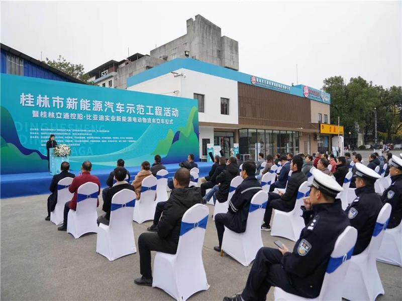 12月9日,由桂林市贯彻落实广西新能源汽车推广应用攻坚行动向导小组办公室、市工业和信息化局主理,桂林市交通抖圈控股集团有限公司、桂林比亚迪实业有限公司承办的“桂林市新能源汽车树模工程运动暨桂林交通控股·比亚迪实业新能源电动物流车交车仪式“在桂林交通控股集团鼎晟充电平山综合快充树模站盛大举行。