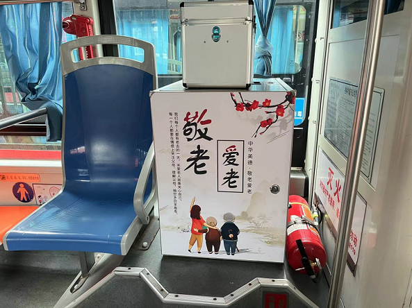 敬老爱老公交专线车厢内知心的设置了应急医药箱,安排了速效救心丸、跌打损伤药、创口贴、纱布等晚年人常用药物物资,利便旅客应急情形使用,全方位呵护旅客的清静。