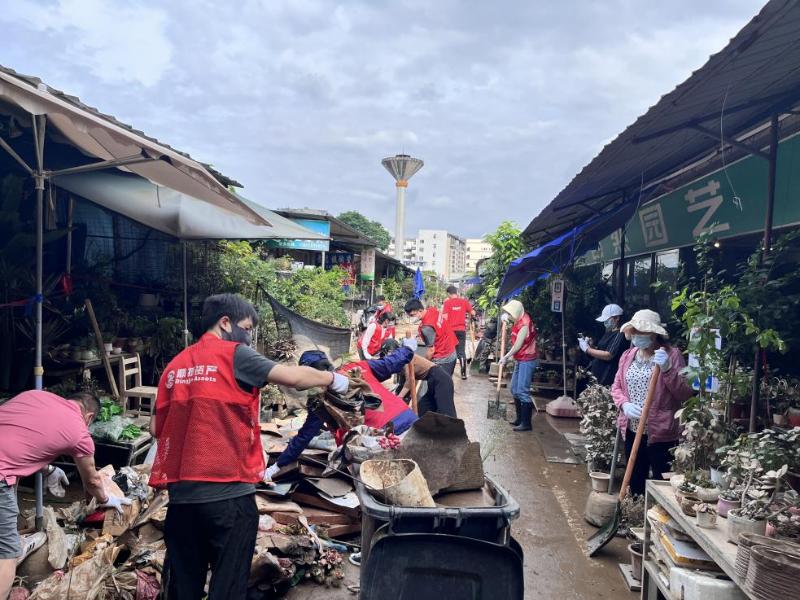 6月22日至23日两天,桂林市鼎捷资产治理集团有限公司组织公司党员、职工70余人,到花鸟市场开展灾后重修自愿服务事情,资助花鸟市场尽快恢复正常谋划。