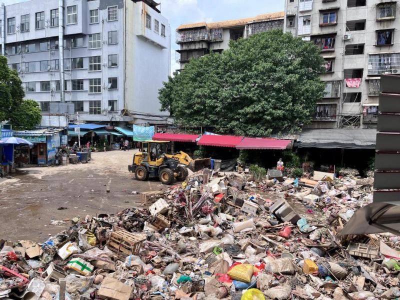 花鸟市场是桂林的老牌谋划场合,市场分花、古玩、宠物三大区域,谋划花卉、古玩百货、鉴赏鱼、宠物等,是一个休闲之地,通常淘货的市民络绎一直。因受洪涝灾难影响,导致市场大宗门面被淹,洪水退后垃圾群集梗塞蹊径,严重影响正常谋划,并且垃圾在太阳底下发出阵阵恶臭,极易滋生病菌。