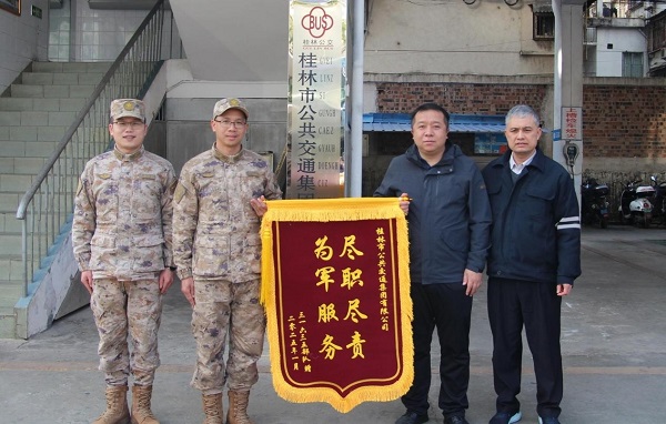 “专线开通后,我们官兵及眷属的出行利便了许多,各人都想对公交公司体现谢谢。”2025年1月14日,奇峰镇营区某部包管部官兵来到桂林公交,送来了一面写着“尽职尽责 为制服务”锦旗,谢谢桂林公交为步队官兵提供了优质的出行包管服务。